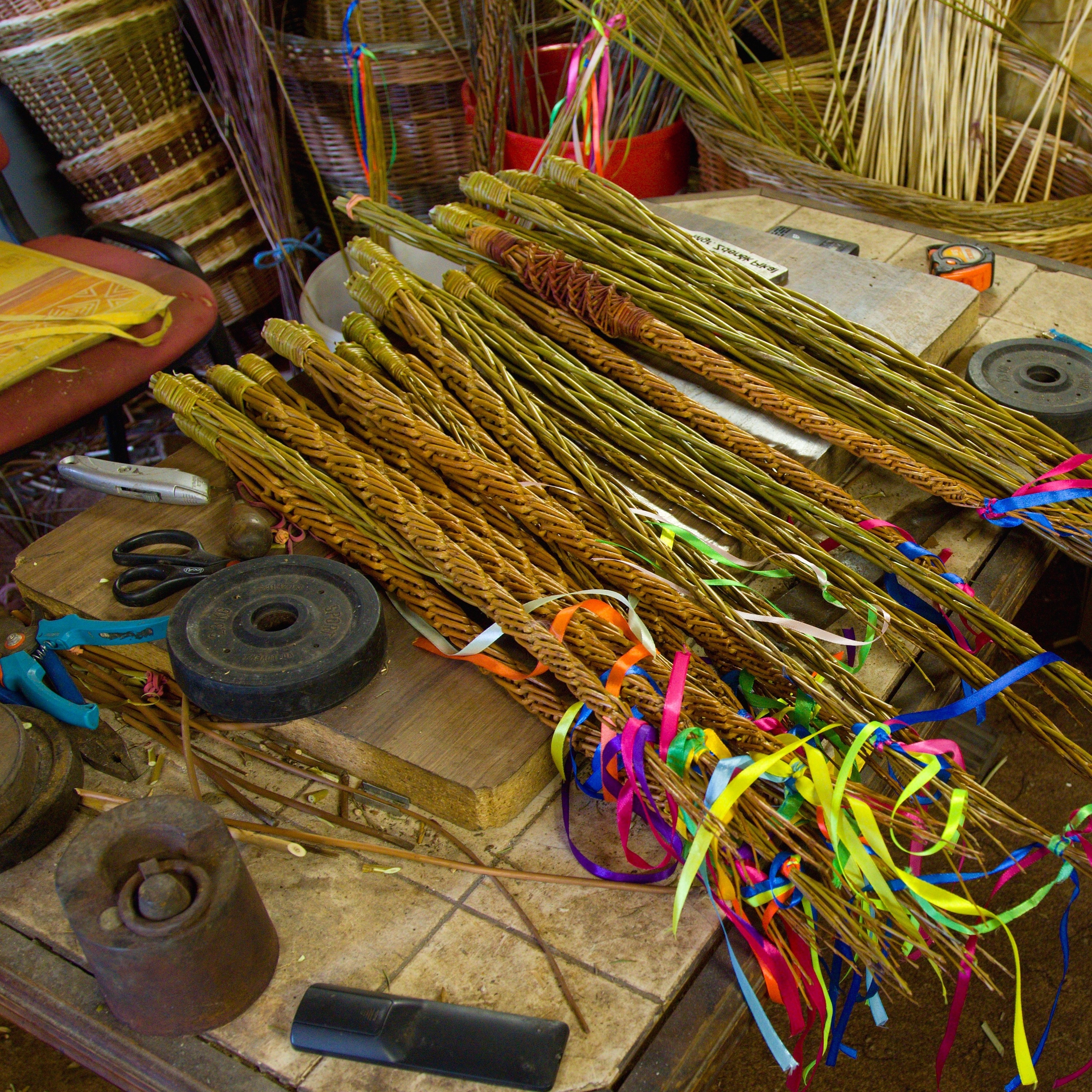 Na pletení ozdobných či nákupních košíků používá vařené proutí, kdy se vařením změklá kůra odstraní a proutí dostane nazlátlou barvu. Pro zpestření lze použít i jiné materiály jako vrbové šény, pedig, slámové úplety, mořskou trávu či vodní hyacint.